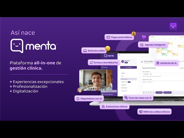 Menta es la plataforma inteligente que integra todas las herramientas que un profesional o clínica necesita para brindar una atención de calidad.