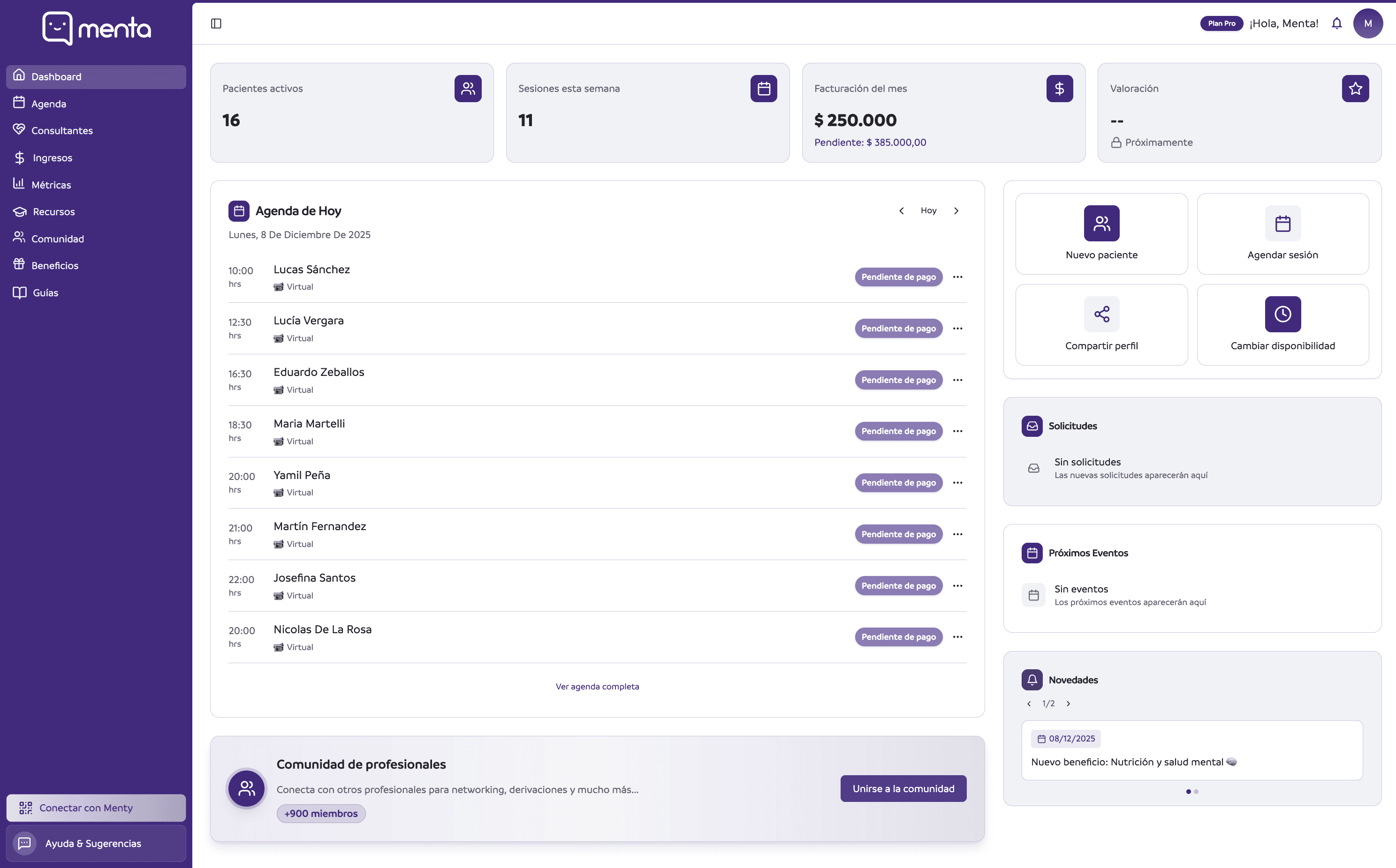 Únete a los profesionales de salud y salud mental que ya están digitalizando su gestión con Menta